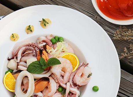 各式生菜洗凈切成適合的大小泡涼水,海鮮什錦焯水